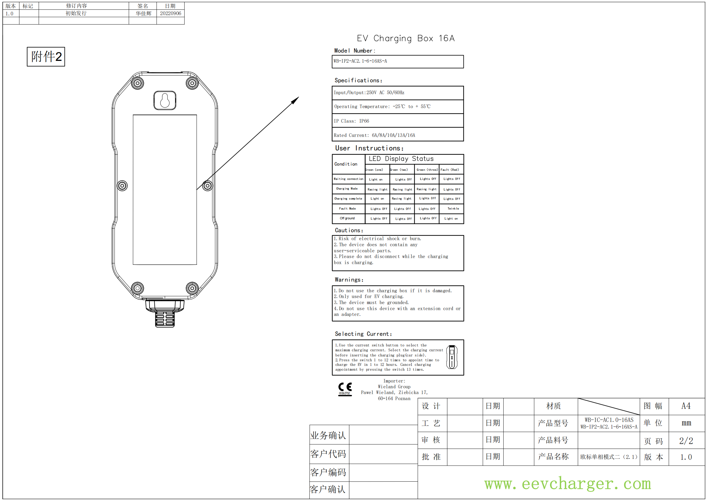 | Adjustable currents | 10A, 16A, 20A, 24A and 32A |
